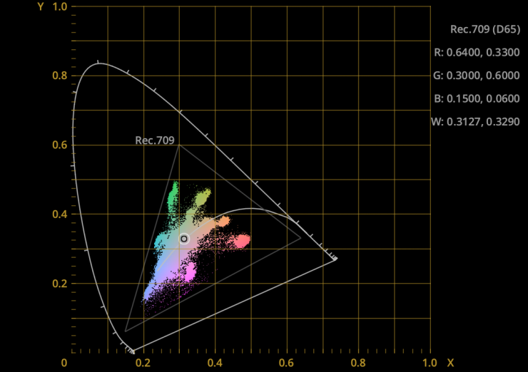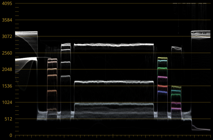 ARRI’s false color tool is a very good way to help users find the optimal exposure. The way it works is that a Log C image is converted into a grayscale image and certain signal regions are indicated in color. The first purple zone shows where the signal has an SNR of 1 or lower.