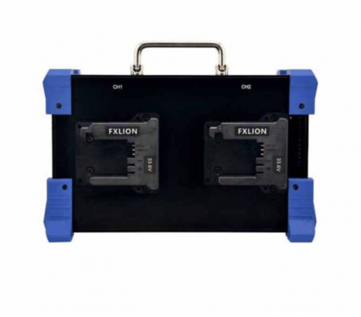 The Fxlion Dual B-Mount Battery Charger is a compact, tabletop-style charger for two 26V B-Mount batteries. It is compatible with standard B-Mount batteries, and you can simultaneously charge to batteries at 2A per channel. Additional features include SMBus communication, automatic voltage detection, and two status LEDs.