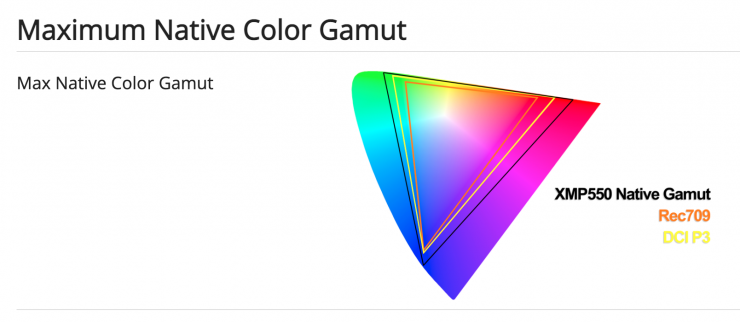 The XMP550 has the widest viewing angle, with the least off-axis contrast and color shift, ever featured in an FSI display. So not only will a colorist’s clients benefit from being able to view a reference image on a large screen they will also have the flexibility to view the image from anywhere in the room without having to worry about the off-axis limitations often seen in other display technologies.