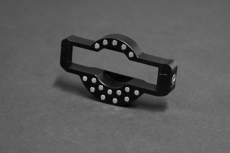 The design utilizes 32 ultra-strong neodymium magnets with a combined pulling force of nearly 12kg to support a loupe. The Flop Stop has 16 positions of rotation, plus the monitor bracket itself can still be adjusted with the original thumbscrew for solid and comfortable viewing at any angle.