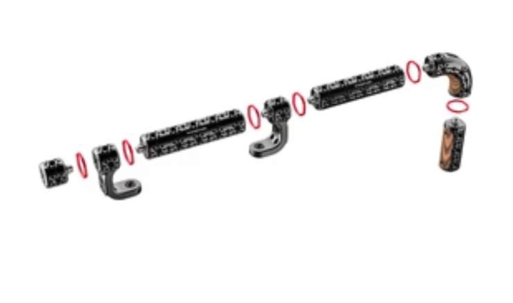 Together, these components provide four-sided protection and support for rod- and thread-mounted accessories such as onboard monitors, EVFs, lens motors, lens supports, follow focus units, matte boxes, magic arms, video and audio transmitters, and more.