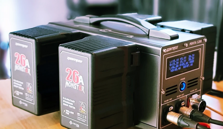 GENTREE also makes a wide array of other batteries in V-mount and AB Gold mount, including the 26A MONSTER series which can be used to run high-power draw lights remotely.