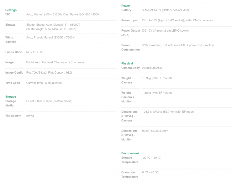 - CFast 2.0 or ZBlade Custom Media