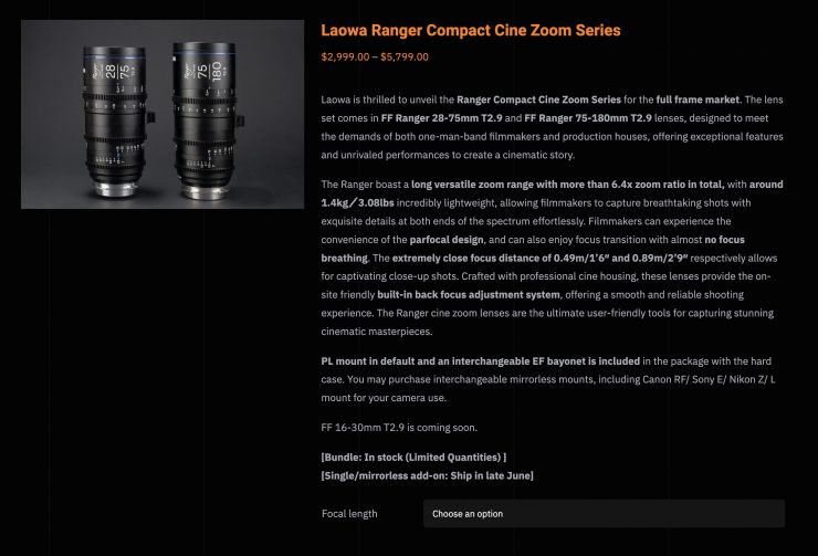 Laowa also exclusively gave us the pricing on the Ranger Full Frame Cine Zooms ahead of their official launch date which was the 13th of June. They retail for $2,999 USD each.
