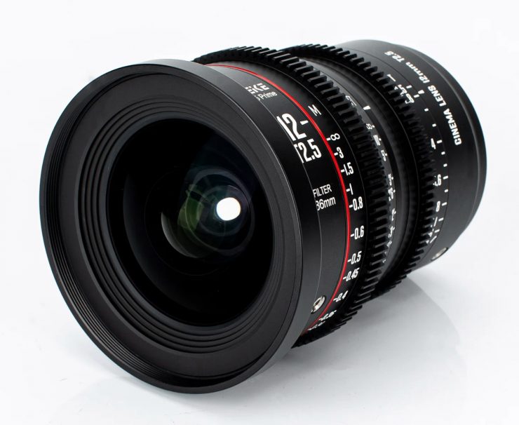The 12mm T2.5 S35 now joins the 18mm T2.1, 25mm T2.1, 35mm T2.1, 50mm T2.1, 75mm T2.1, and 100mm T2.1 to form a reasonanly comprehensive set of 7 lenses.
