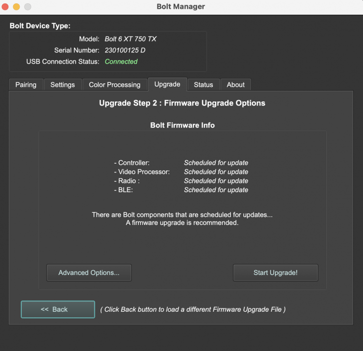 The Teradek Bolt Manager app is a very easy and intuitive way to pair, monitor, and make changes to your Bolt 6.