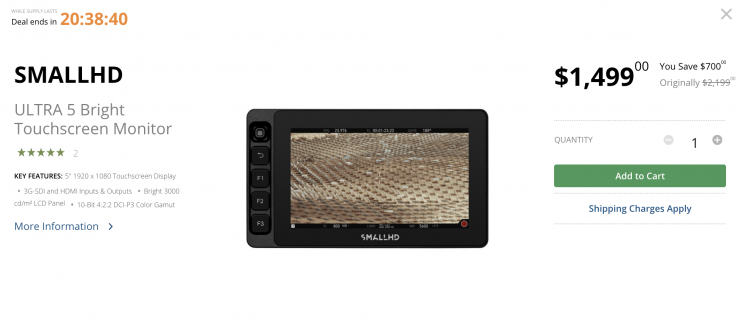 The SmallHD ULTRA 5 Bright Touchscreen Monitor is on sale today for $1,499 USD which is a massive saving of $700 USD.