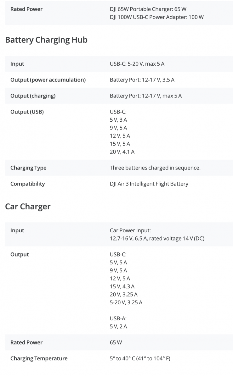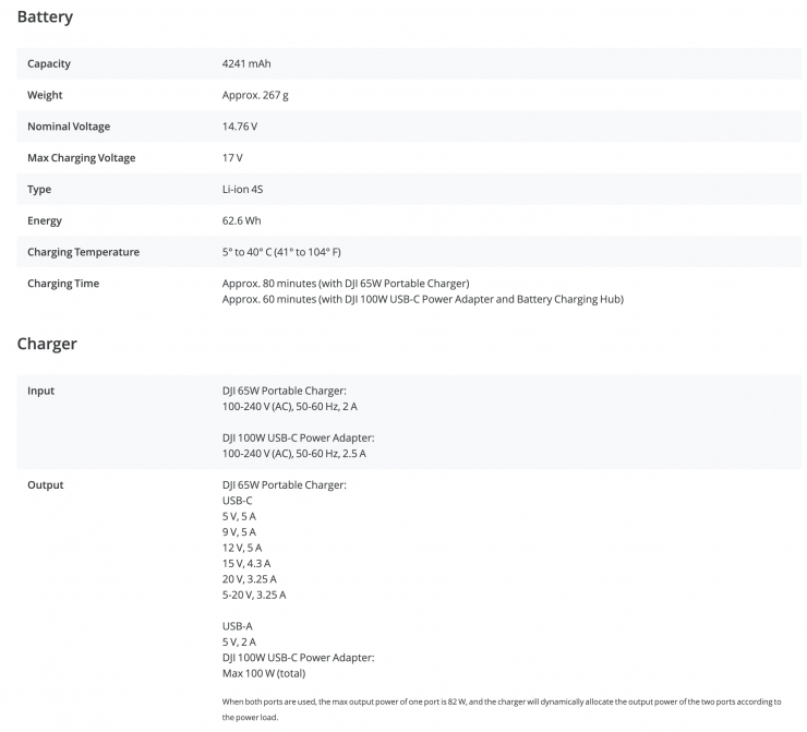 DJI 100W USB-C Power Adapter: The power adapter can fast charge the battery and remote controller simultaneously, or mobile devices through the USB-C ports.