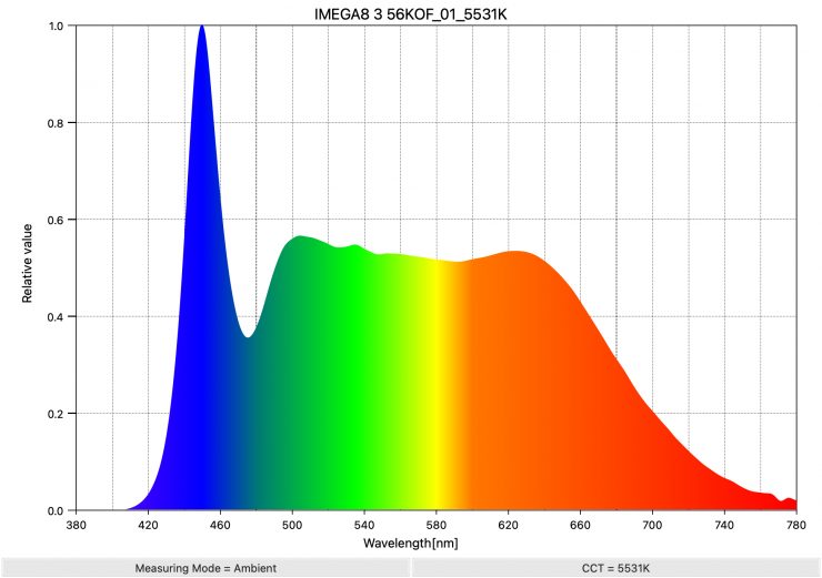 Above you can see the spectral distribution of the Mega-LiteCloth when it is set at 5600K. The spectral distribution is decent and there aren’t any spikes where you wouldn’t expect there to be.