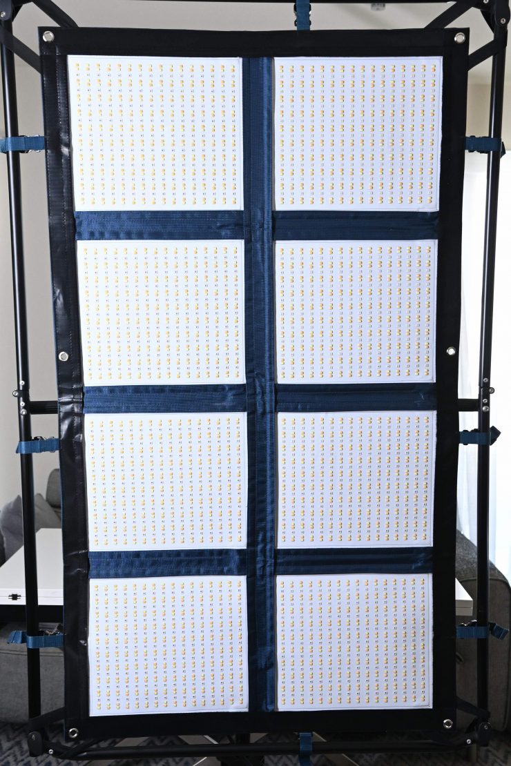 The MEGA-8 LITECLOTH 3.0 is essentially 8 1×1 panels that are combined to create a single large lighting source. When folded out, the fixture has a footprint of 57″ x 33″ / 144.8 x 83.8 cm.