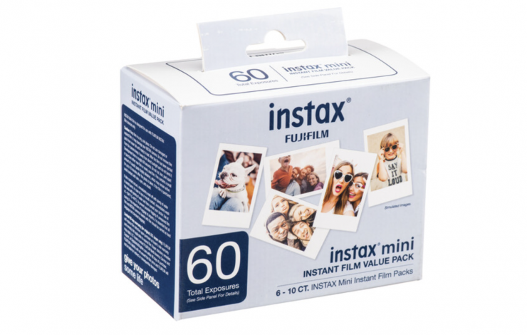 The camera accepts INSTAX MINI instant film and it will produce 2.4 x 1.8″ images on a credit card-sized, 3.4 x 2.1″ sheet. A FUJIFILM INSTAX MINI Value Pack Instant Film (60 Exposures) costs $37.88 USD. There is