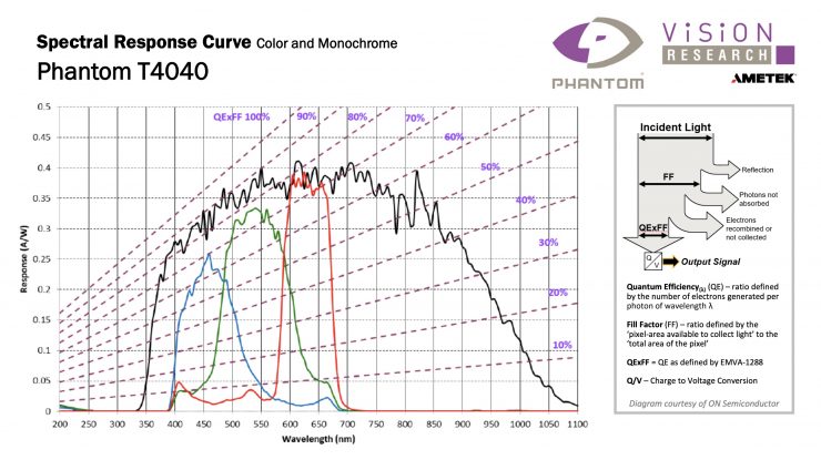4.2 MPX BSI sensor and it records to Phantom CineMags. According to Phantom, a peak Quantum Efficiency rating above 90% ensures the sensor’s ability to capture images at low light levels.