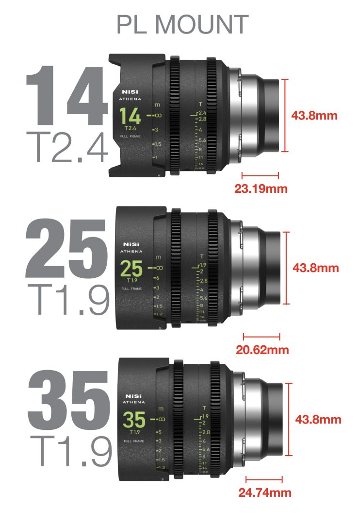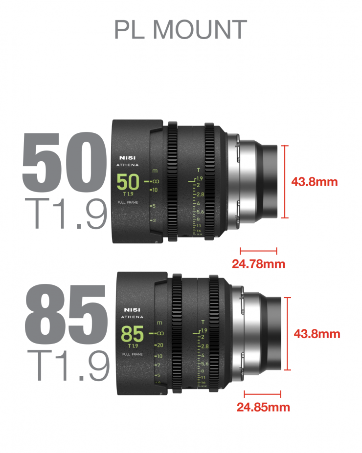 The NiSi ATHENA Prime Full Frame Cinema Lenses are available in PL, E, and RF mounts. There is also a Leica L mount version coming.