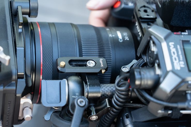With past cameras I used, like the EOS 5D Mark IV and the EOS R, I used to remove the cages when shooting stills, but with the new cages for the R5 series, I find them ergonomic enough to keep them on all the time and the flash and remotes can be used without problem. I’m using the Tilta cage on the R5C and a Small Rig Black Mamba cage on the R5.