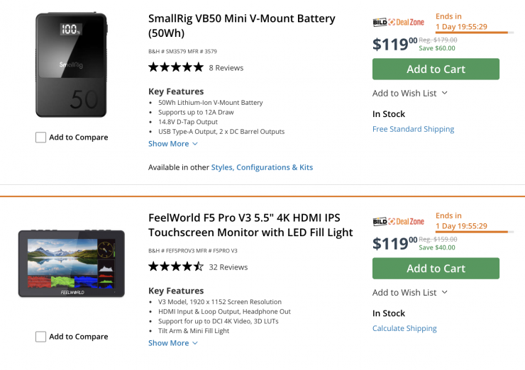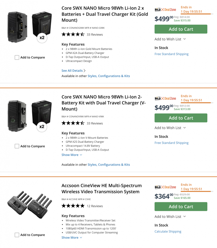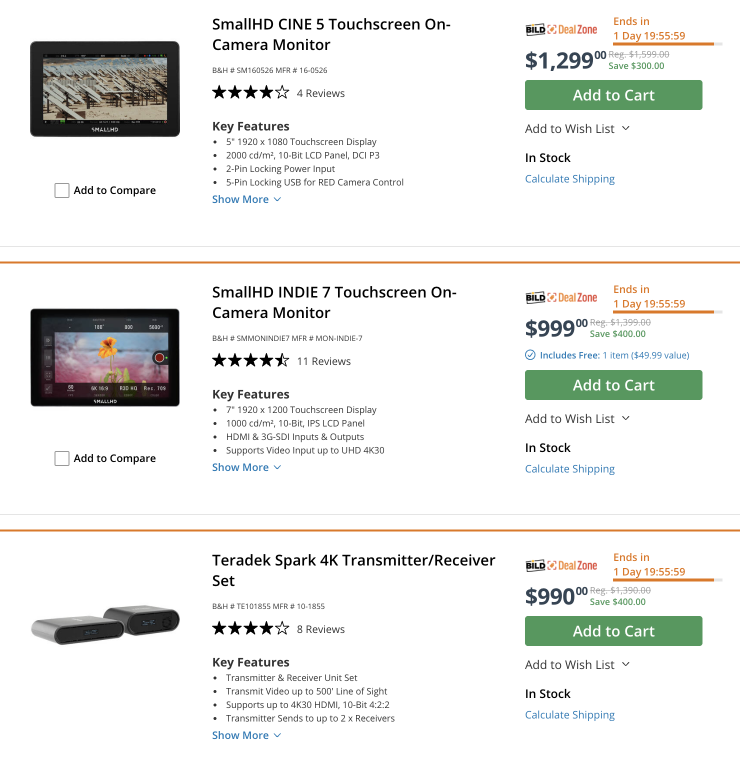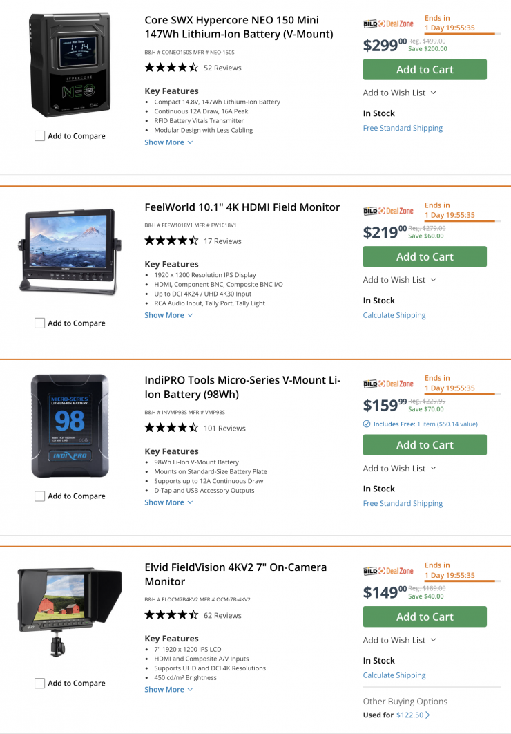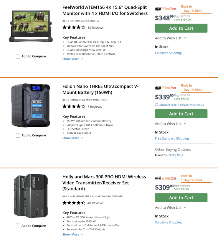 In the B&H Deal Zone, you can save up to $1,100 USD on Monitors, Batteries, and Wireless Video Transmission Systems.