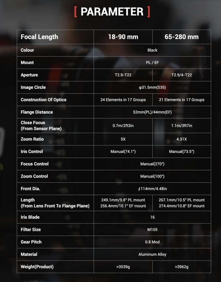 DZOFilm has officially announced its new Tango 18-90mm T2.9 and 65-280mm T2.9-4 S35 Cine Zooms. Both of these zooms offer great focal ranges and they can also be used with an optional servo zoom.
