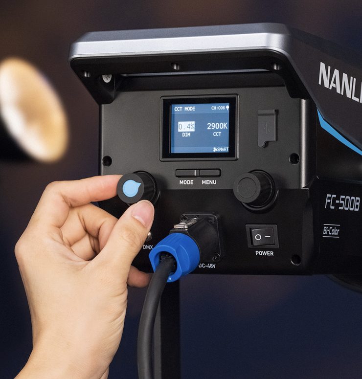 The FC-300B and FC-500B have built-in 2.4G and Bluetooth modules that support Nanlink APP control. You can also use a wired DMX/RDM connection if you need to use the lights for more complex and accurate group control.