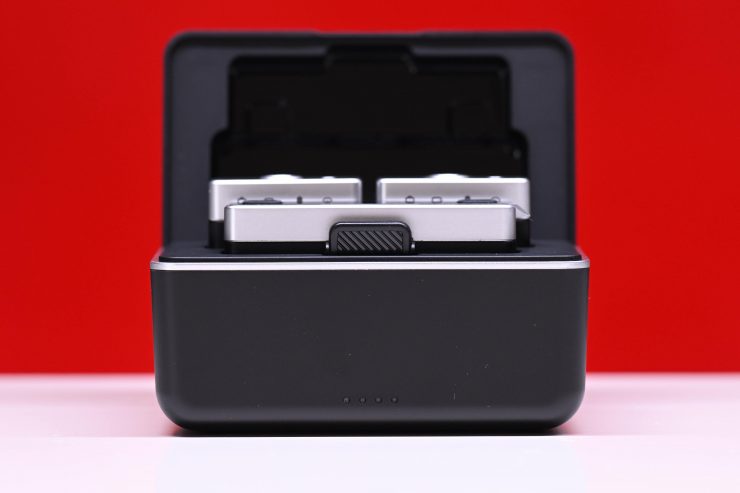 The charging case not only automatically charges the two TX units and the RX unit as soon as you put them inside, but it also makes for a nice compact storage solution as well.
