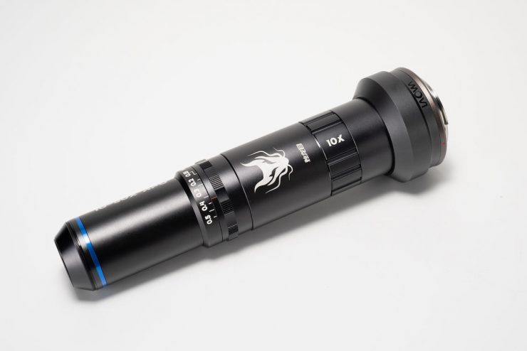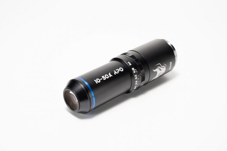 The lens also has an adjustable NA that ranges from 0.15 to 0.5. This gives users the flexibility to focus with brighter NA and then set to the optimal NA that is best for the camera sensor and lighting setup. It also helps to slightly control the depth of field when shooting video.