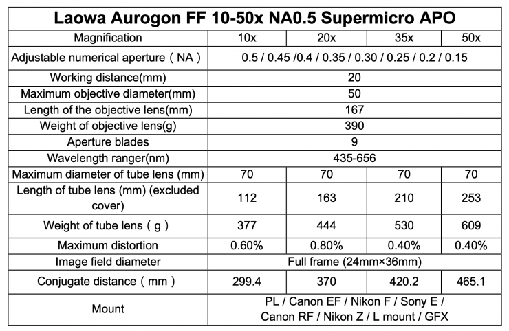 The Laowa Aurogon FF 10-50x NA0.5 Super Micro APO is available to purchase via Venus Optics official website (http://www.venuslens.net/) and authorized resellers.