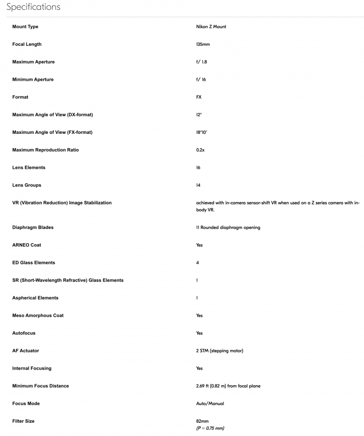 The Nikon NIKKOR Z 135mm f/1.8 S Plena is now available to pre-order for $2,496.95 USD.