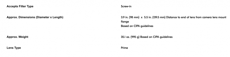 Despite covering a full frame sensor and having an aperture of f/1.8 the 135mm tips the scales at just 995g / 351 oz.