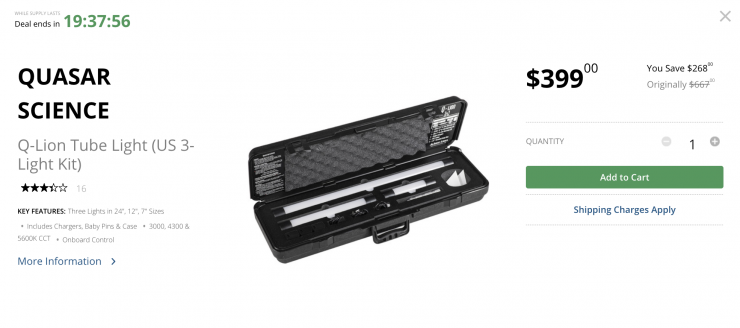 The Quasar Science Q-Lion Tube Light (US 3-Light Kit) is on sale for $399 USD which is a big saving of $268 USD.