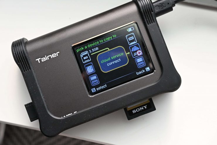 The ClouZen Tainer is a new portable all-in-one backup storage solution. It allows you to copy and verify CFexpress Type B cards or any type of SD card on location without the need for a computer.