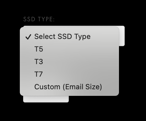 Speaking of the SSD, you can pick one from their list, or request a different SSD size at the following email: [email protected] (Please select custom and include dimensions if possible).