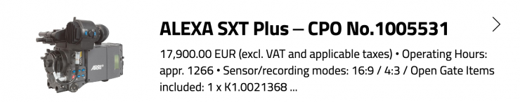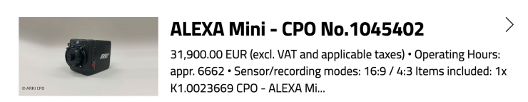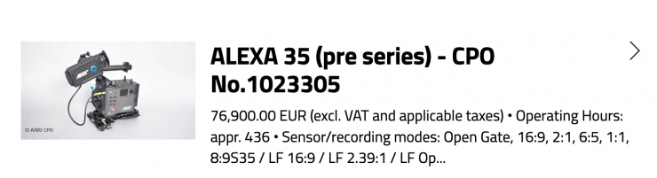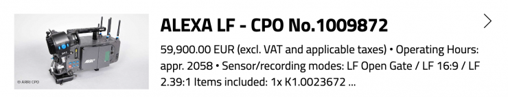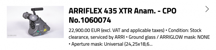 ARRI currently has 9 cameras available ranging from an ARRIFLEX 435 XTR Anam. to an ALEXA 35.