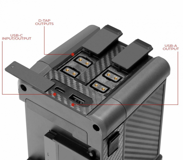 Output power: B-mount 28.8V, 10A (max), D-tap: 16V, 3A (max), USB-A: 5V, 2.1A (max), USB-C: 5V/3A, 9V/3A, 12V/3A, 15V/3A, 20V/3.5A