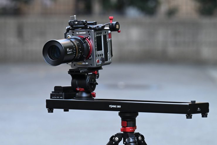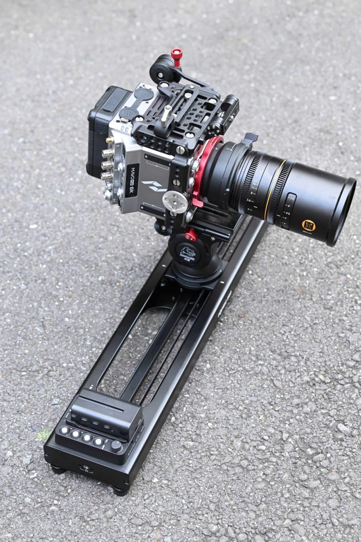I tested the slider with a Kinefinity MAVO EDGE 6K, 85mm 1.8x anamorphic lens, and an iFootage Komodo K5 head. This combined to give me a total weight of just under 4kg. The slider worked well, even with this payload configuration.