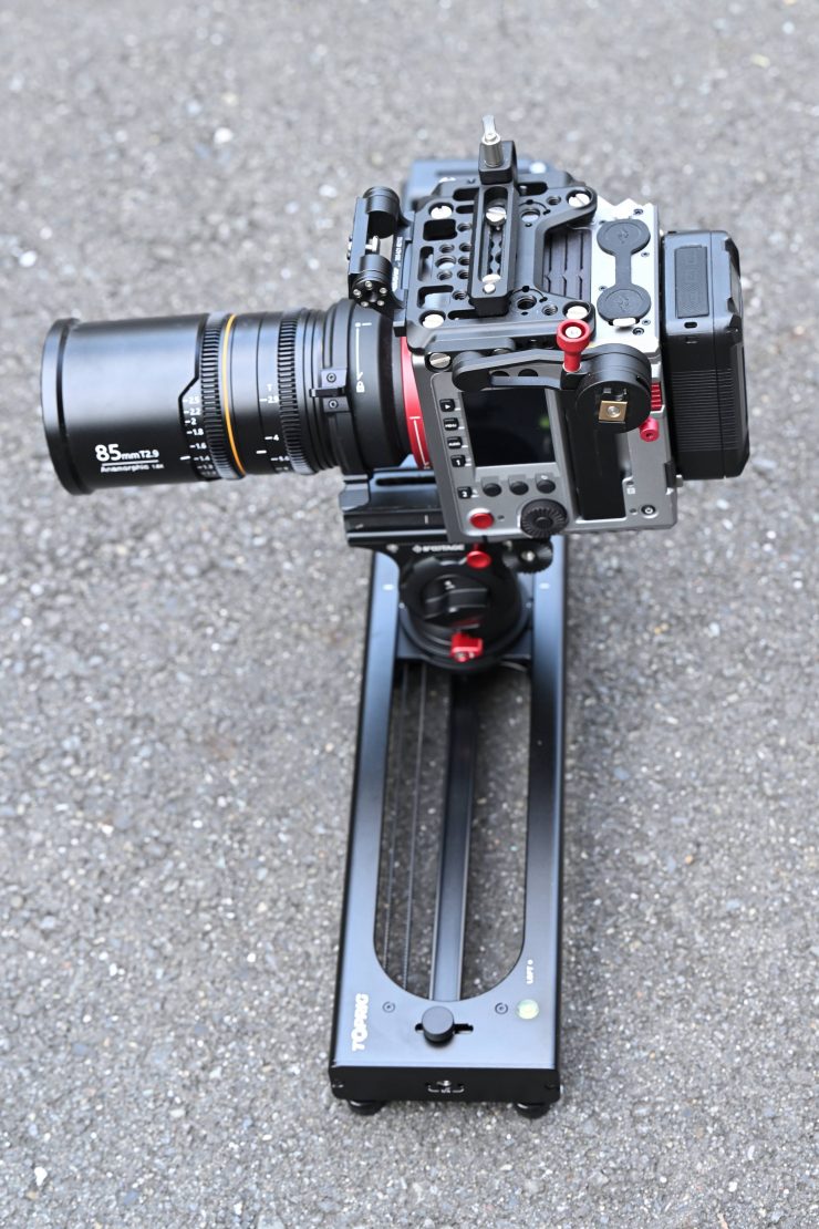 The caveat I came across was that if you use a larger-sized Sony NP-F battery it can end up hitting your tripod head (although this will depend on the tripod head you are using) at the end of the slide. This is particularly noticeable if you are doing a parallax-style shot.