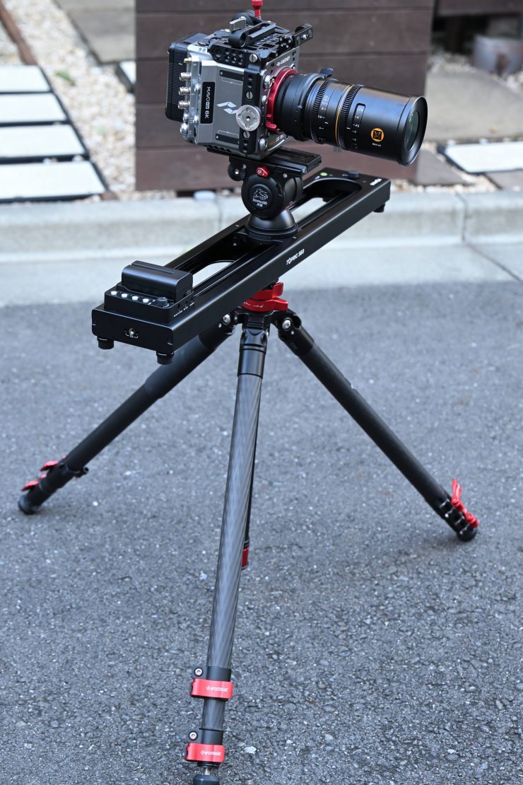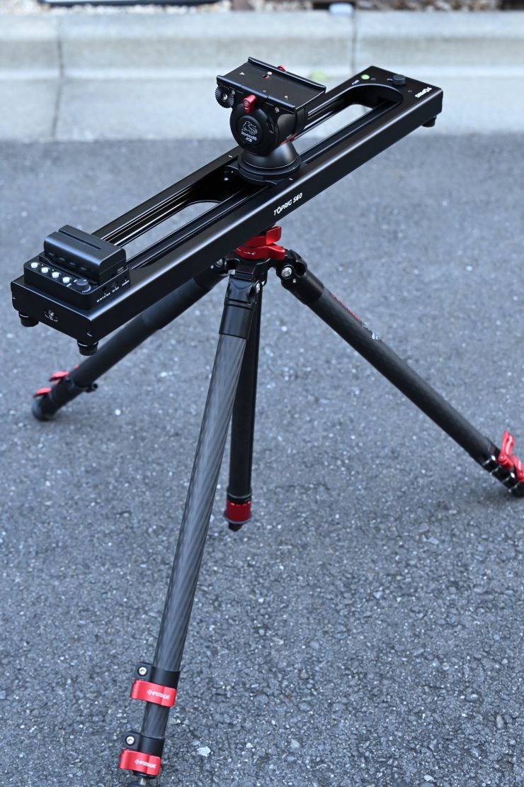 When you use it in conjunction with a small-sized tripod and flat-based head, you can create a very lightweight combination. This allows you to use the slider at a variety of heights and also on uneven surfaces outdoors.