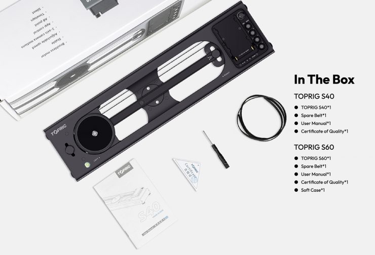 In the kit, you get the TopRig S60 Slider, an instruction manual, a lightweight carry bag, and a replacement belt and a tool.