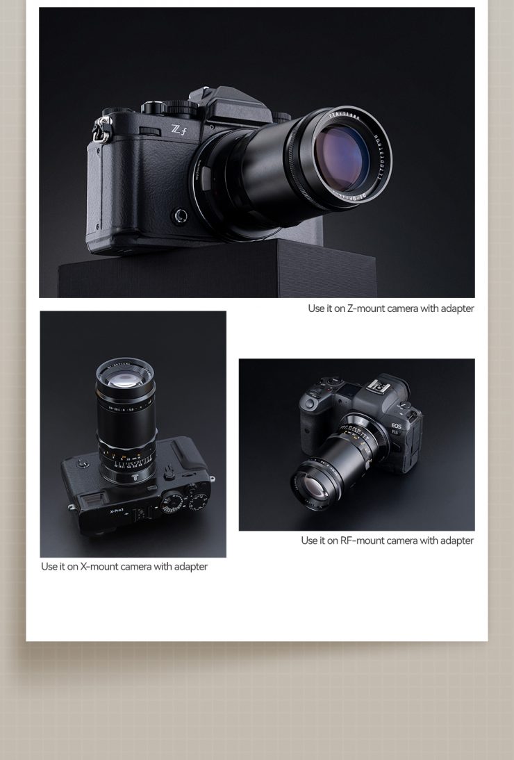 Leica M Mount is relatively easy to adapt to Sony E, Canon RF, Fujifilm X, Nikon Z, Lexus L, etc. through the use of adapters.