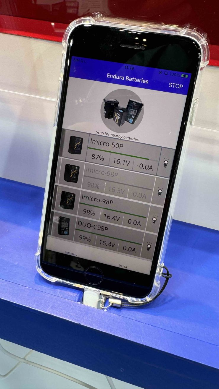 On an iOS or Android device, you can use an app that is able to provide you with a comprehensive array of data about your battery. Everything from remaining power, current, voltage, battery charging cycles, and even how much charge time there is to go can be accessed. This is very handy because numerous people on set could have access to battery information that is being used on a wide array of devices and know when a battery needs changing without needing to physically go over to a device and check.