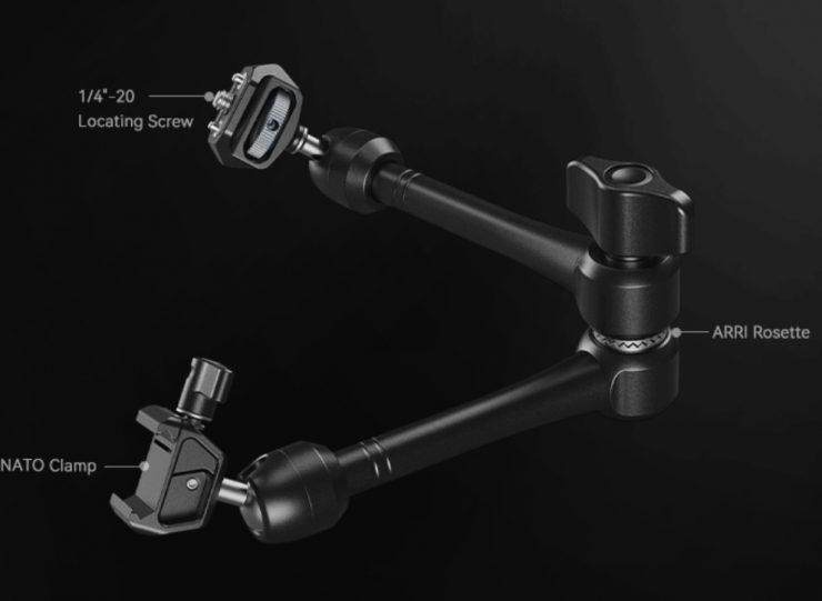 One end of the Magic Arm features a built-in 1/4”-20 screw with retractable locating pins, and the other end has a NATO Clamp so you can make adjustments without needing any tools. This lets you quickly adjust positioning and height with a single locking lever.