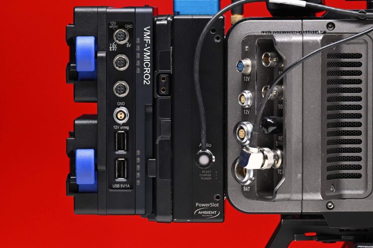 Please note, that in the above images, I am using the Coco-Vmicro2 in conjunction with an ARRI Ambient Power Slot for AMIRA (V-Mount) and that is why it looks extra long.