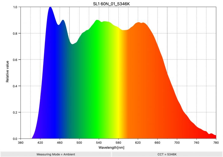 The White Balance came in at 5356K. Not bad for a 5600K rated fixture.