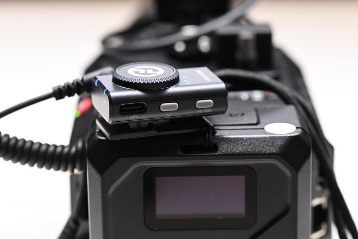 The belt clip on the RX unit doubles as a cold shoe mount so you can easily place it onto a camera without needing a cage.
