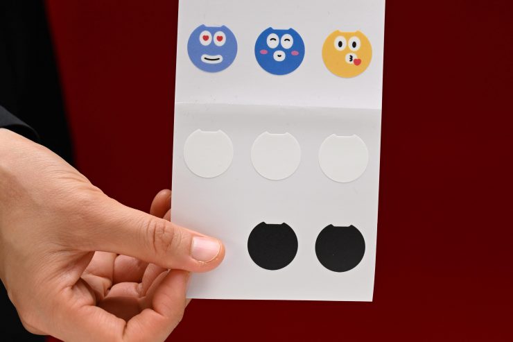 In the kit, Hollyland gives you a collection of stickers that you can use to cover the logo on the TX units. There are black-and-white options, as well as a bunch of emoji-style stickers that social media influencers may want to use.