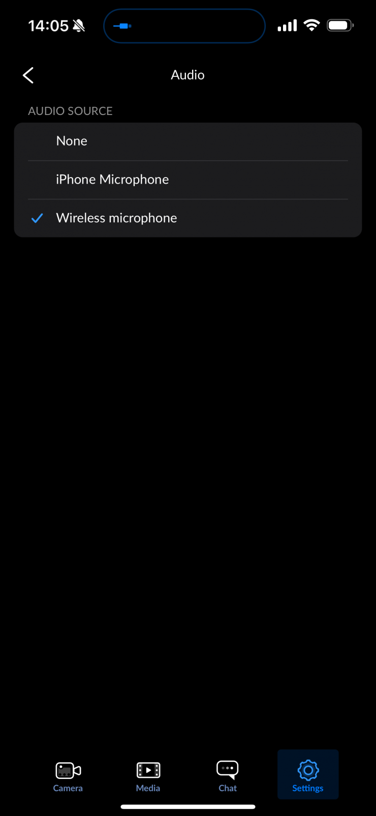 All you need to do is go into the audio menu in the app and select wireless microphone.