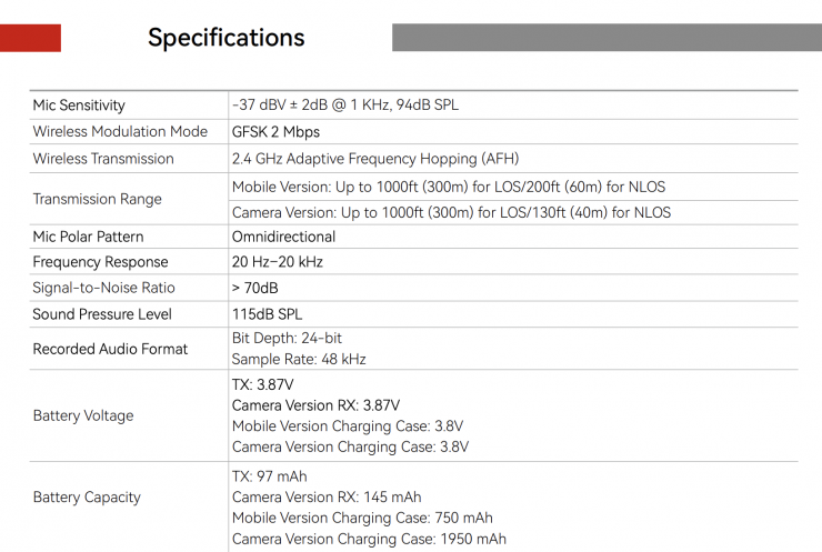 Hollyland claims that internal lithium-ion polymer batteries in the LARK M2 allow the TX unit to operate continuously for up to 10 hours. The Camera Version RX can operate for up to 9 hours. As you can’t use one without the other, the operating time for the system is going to be up to 9 hours. This is pretty decent and arguably enough to get you through most shooting days.