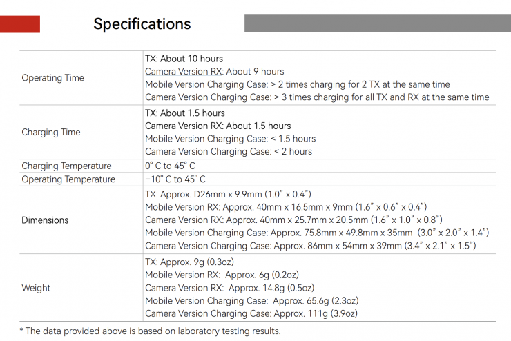| Hollyland LARK M2 | 9g / 0.32 oz | 1.0 x 0.4″ |