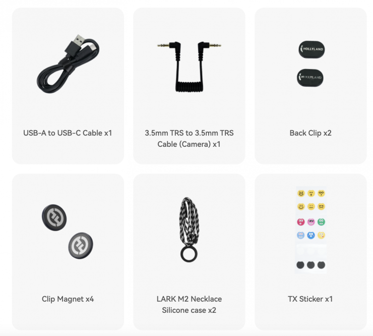 The Hollyland LARK M2 Combo Version kit contains the following items: