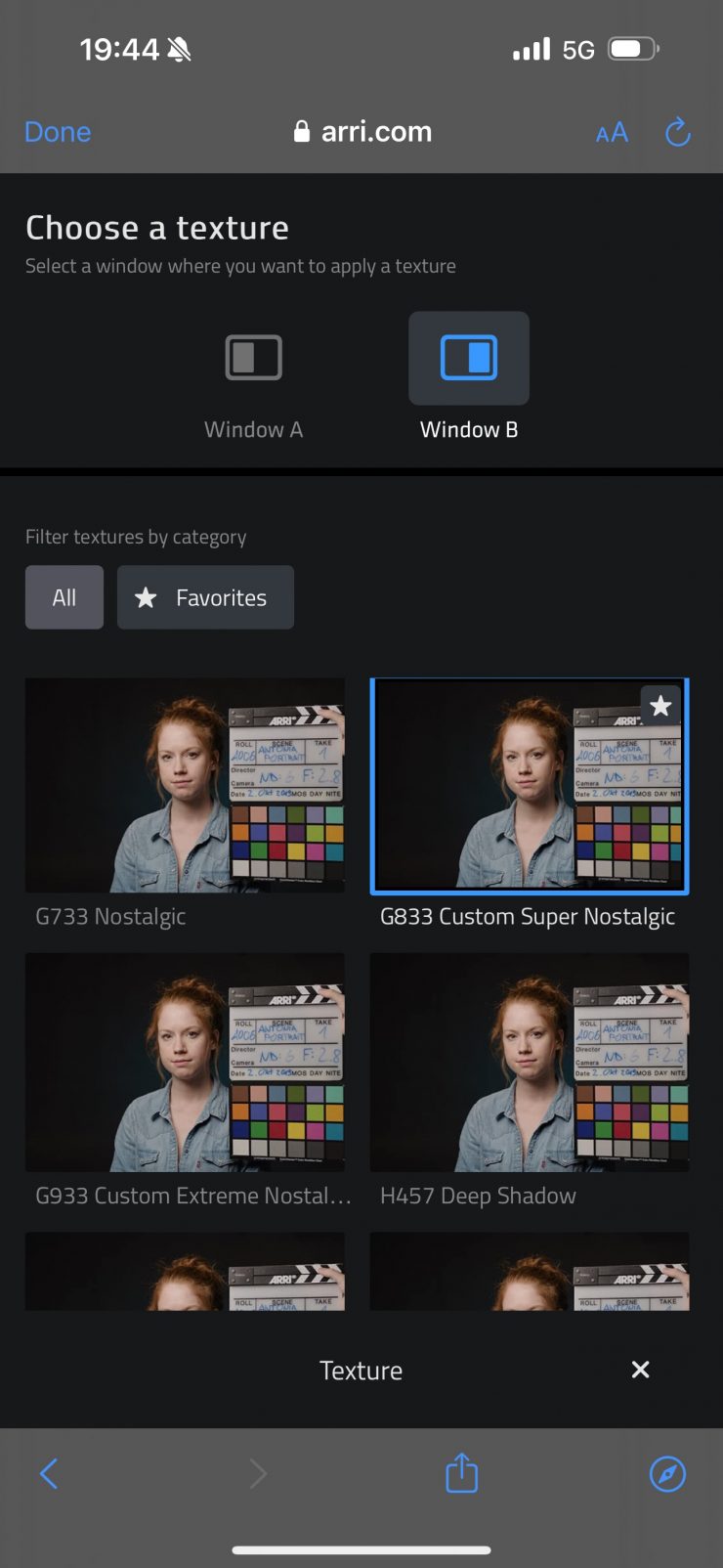 You can test and choose an ARRI Texture in pre-production in exactly the same way as you would with a show LUT.