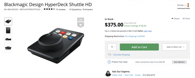 The Blackmagic Design HyperDeck Shuttle HD is on sale for $375 USD which is a saving of $120 USD.