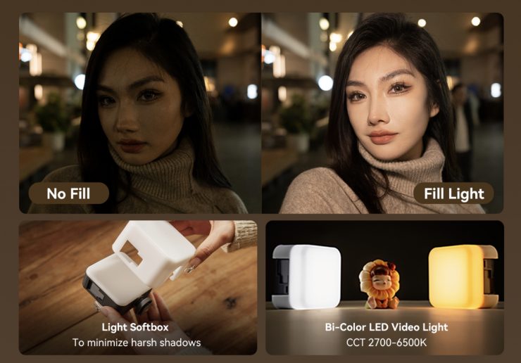 The LED video light comes with three cold shoe mounts that allow for the attachment of more accessories. It has a CCT range of 2700-6500K and a claimed battery life of up to 13.5 hours.