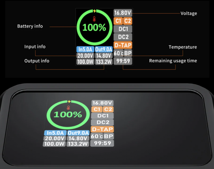 The batteries are equipped with a 1.3″ IPS screen and the display can show current, voltage, total power, remaining time, temperature and other information of the battery.